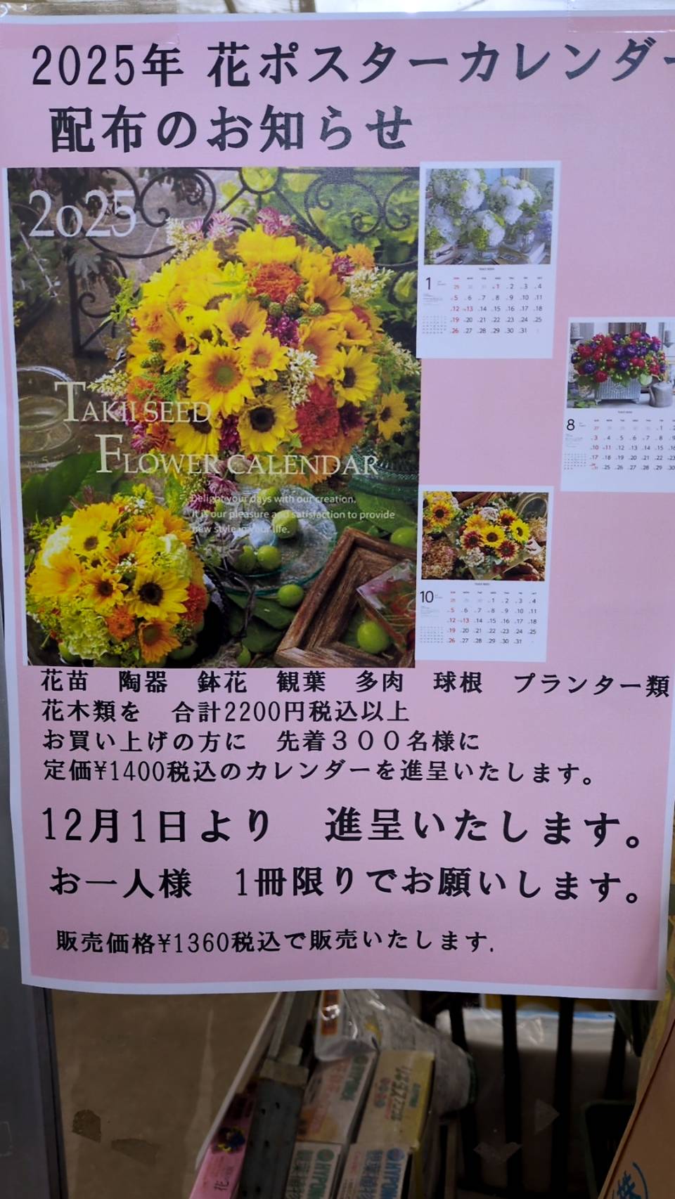 この度、2025年の花ポスターカレンダーを税込2,200円以上お買い上げの方に先着300名様限定でプレゼント!! ※おひとり様1冊限りでお願いします。