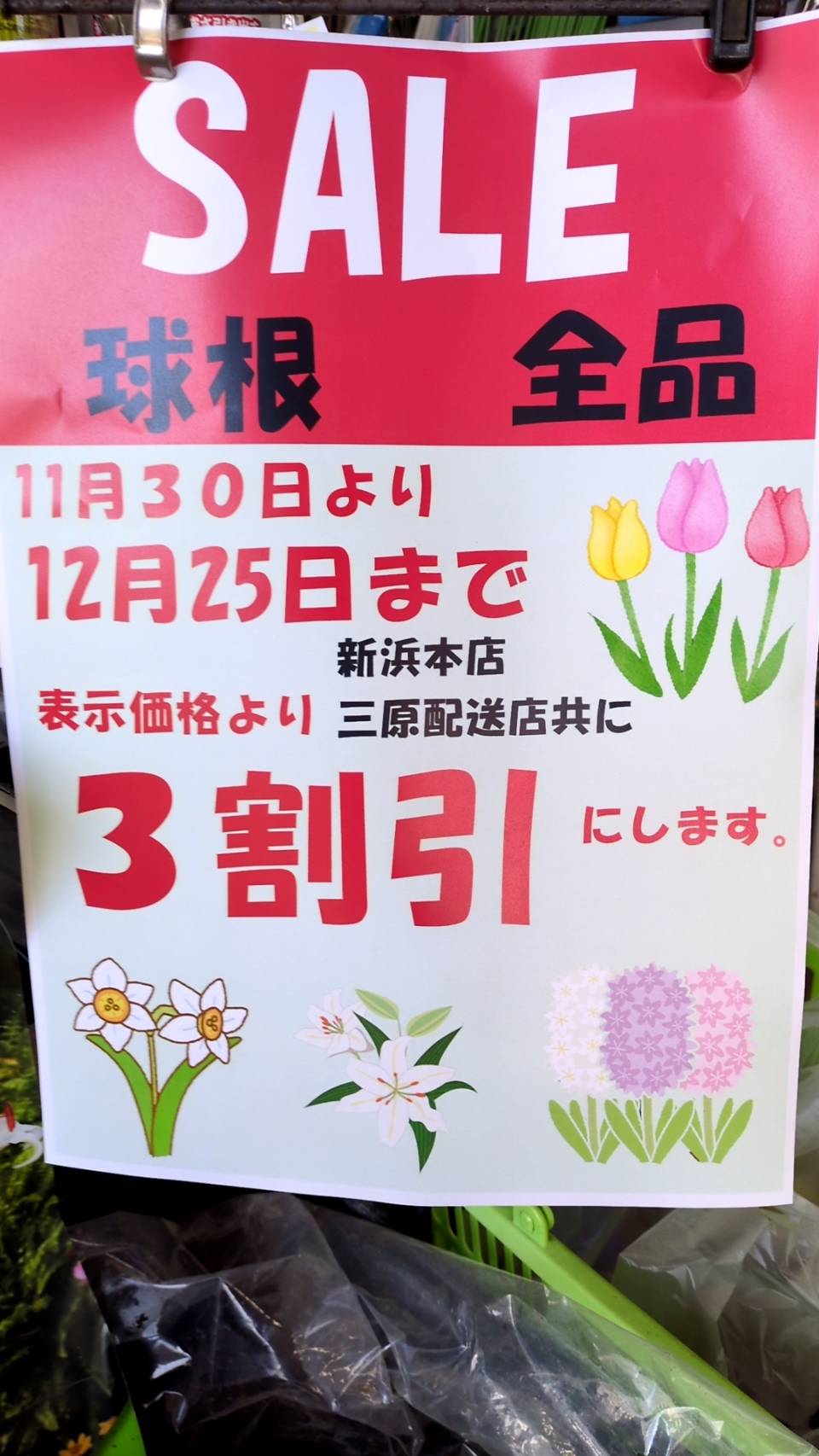 ただいま、新浜本店と三原配送店共に球根全品SALEを行っております。